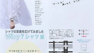 グループ展 Why?シャツ展のご案内 Why?シャツ展 シャツの定義を広げてみました開催日時■ 2023年8月21日 (月)~8月31日 (木)■ 12:00~19:00 (土曜・最終日 4時まで)※ 日曜休廊会場■ 堺筋本町 不二画廊 541-0056 大阪市中央区久太郎... 2023.08.19 グループ展
